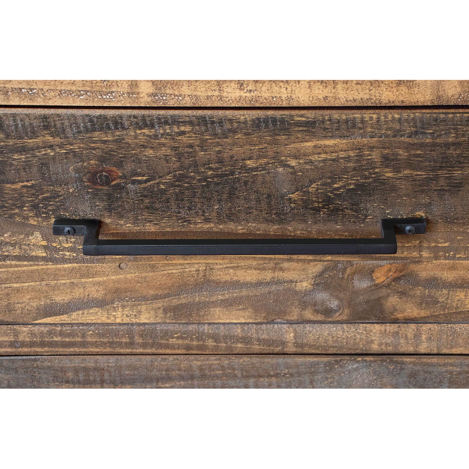 • Hand-painted gray and brown finish for “reclaimed wood” look