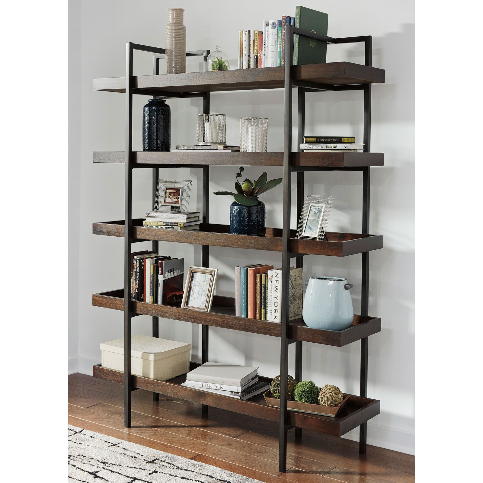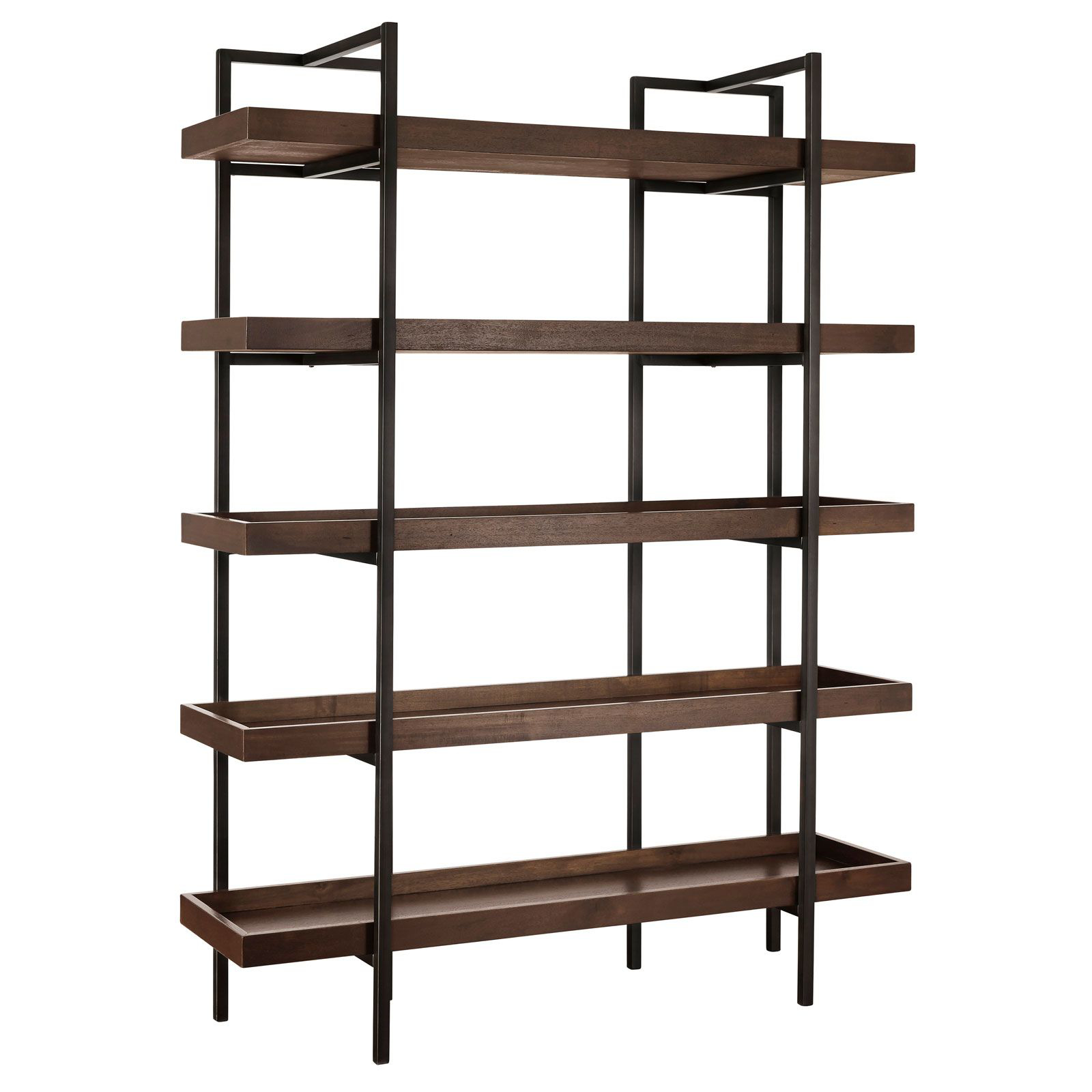 Complete your home office with modern industrial design. Oiled walnut finish beautifully accents the dark, gunmetal frame. Five large shelves allow you to display your favorite items. Provide your home office with modern style and functionality.
