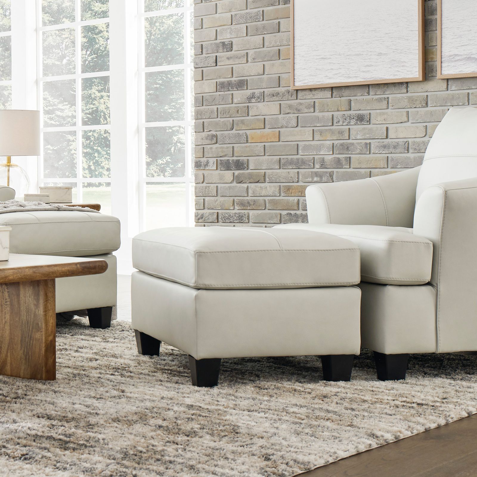Elevate your living space with the Genoa Coconut Leather Ottoman. Upholstered in a captivating coconut cream color, this piece features real leather and is matched with polypropylene. Beneath its surface lies a high-resiliency foam cushion, wrapped in thick polyfiber, promising unparalleled comfort. This ottoman is not just a plush rest for tired feet or a stylish platform for trays, but a true embodiment of affordable luxury, seamlessly fitting into any fashionable and relaxed lifestyle.