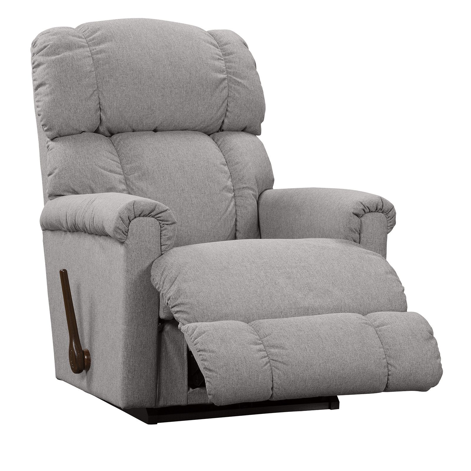 Relax in style with the Pinnacle Stone Rocker Recliner by La-Z-Boy. Upholstered in stone gray leather where it counts, this manual recliner features a tall, channel-stitched back, padded rolled arms, and a chaise seat for full-body comfort. It rocks gently or reclines into 16 positions with a side handle that locks the legrest in three supportive angles. Built with high-quality materials and backed by a limited lifetime warranty, it's comfort you can count on.