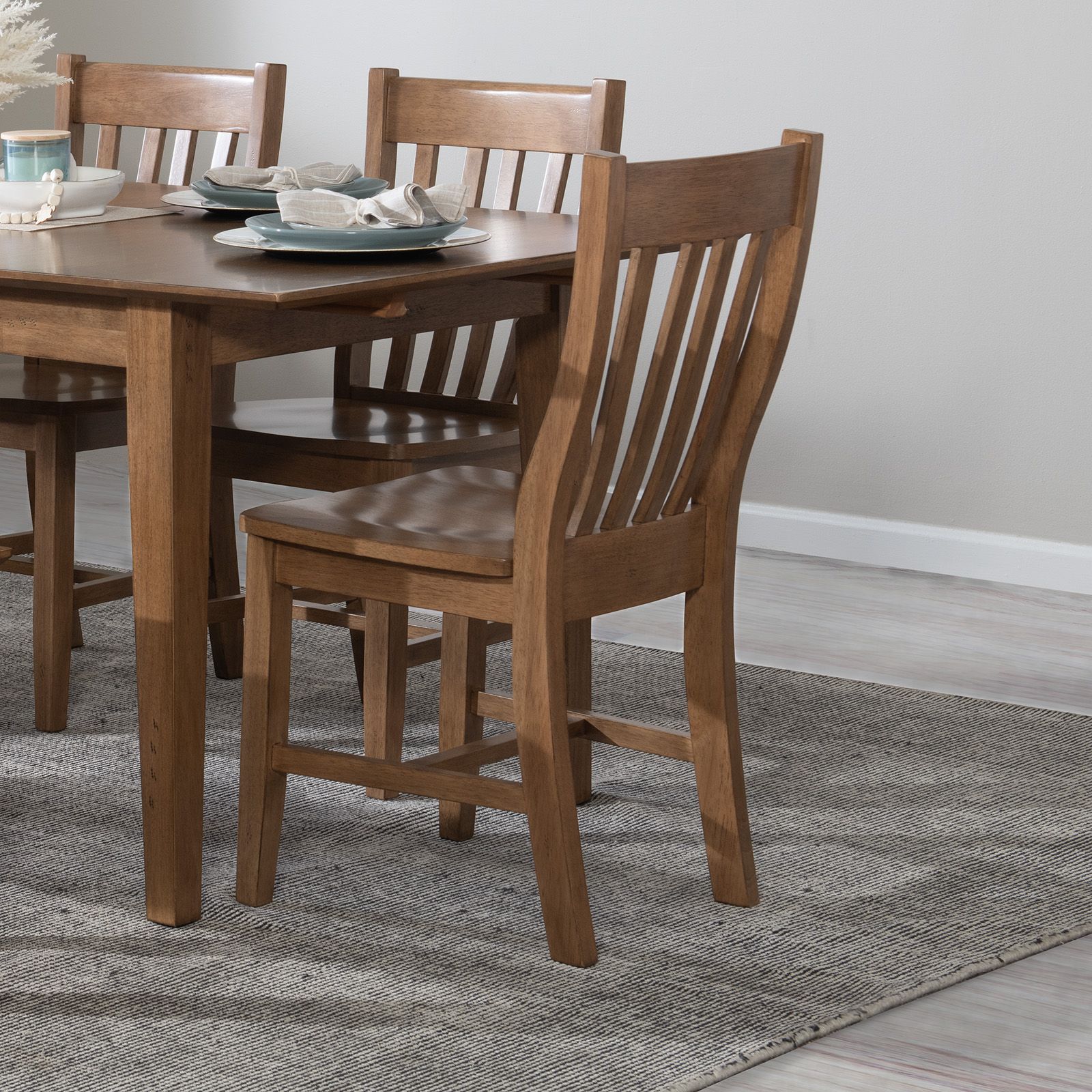 Bring timeless style and everyday functionality to your dining space with the 5-Piece Hickory Shaker Dining Set. Crafted from solid wood with a warm hickory finish, this set includes a sturdy dining table and four ladder-back chairs. The Shaker-inspired design features clean lines, slightly tapered legs, and a reverse bevel edge on the tabletop for a refined touch. A 12" butterfly leaf lets the table expand from 60" to 72" wide, offering extra space when needed. Each chair is thoughtfully designed with a gently curved seat for added comfort, making this set as inviting as it is durable.