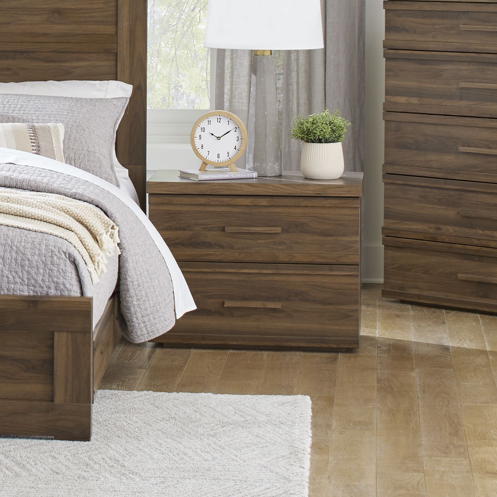 The Borgata Chest combines sleek design with everyday functionality. Finished in rich American Walnut, it features five spacious drawers with full-extension glides and matching wood hardware for a seamless look. With its clean lines and mid-century styling, this chest adds both charm and convenient storage to your bedside.