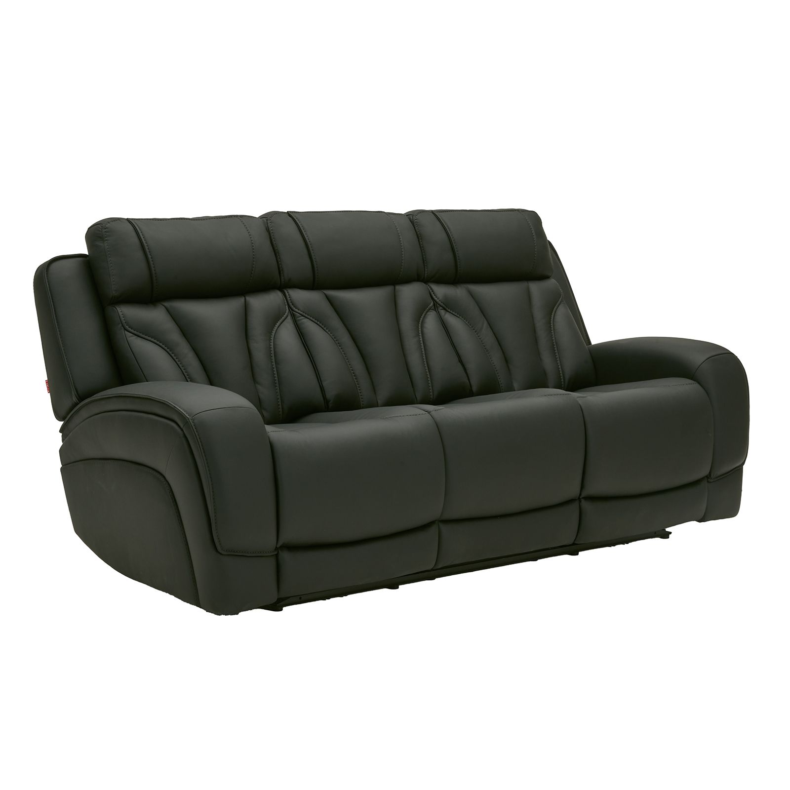The Jetset Charcoal Leather Power Recliner Sofa brings luxury and functionality into your living space. Upholstered in smooth top-grain leather with matching vinyl sides and back, its modern charcoal gray silhouette exudes sleek sophistication. The overstuffed "U" shaped back cushions provide soft, enveloping support, enhanced by breathing holes for added comfort. With a zero-gravity reclining feature, neck, back, and hip pain are minimized, making lounging a therapeutic experience. Each arm includes hidden storage, cupholders with LED lighting, and built-in USB/USB-C ports. The center seat boasts a power drop-down table, wireless charger, and reading light for ultimate convenience.