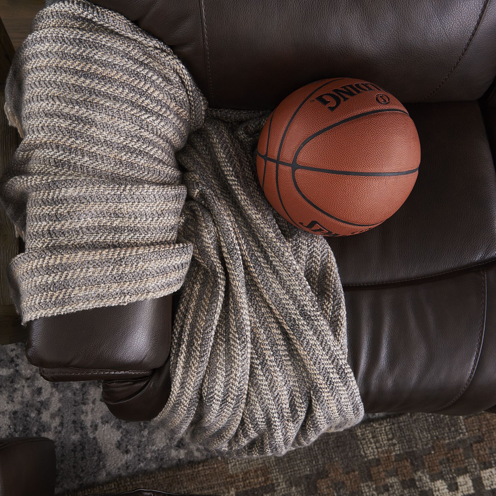 The Trouper Walnut Leather Recliner Loveseat is the perfect addition for laid-back family living. With dual manual recliners, sculpted-bucket chaise seats, and soft split backs, it offers personalized comfort in a casual, inviting style. Upholstered in real leather where it matters, with walnut brown tones and topstitch detailing, this loveseat blends durability with relaxed design. Easy-action latch releases let you recline your way—feet up or not—while blown fiber cushions and high-grade foam provide lasting support. Built for comfort and made to last, Trouper makes lounging together even better.