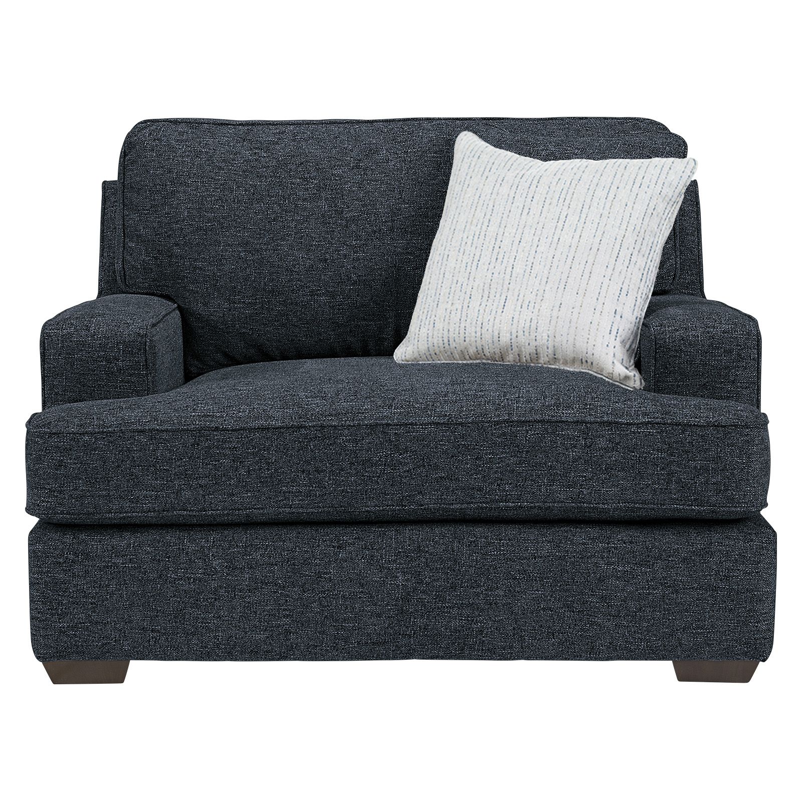 The Paxton Navy Sofa offers deep, roomy comfort with a sleek, modern design. Upholstered in durable navy blue polyester, it features wide arms with welt trim, low-profile wood legs, and two cozy throw pillows. Patented ComfortCore® cushions and high-grade foam ensure lasting support and shape. Built in the U.S. with quality materials and backed by a Limited Lifetime Warranty.
