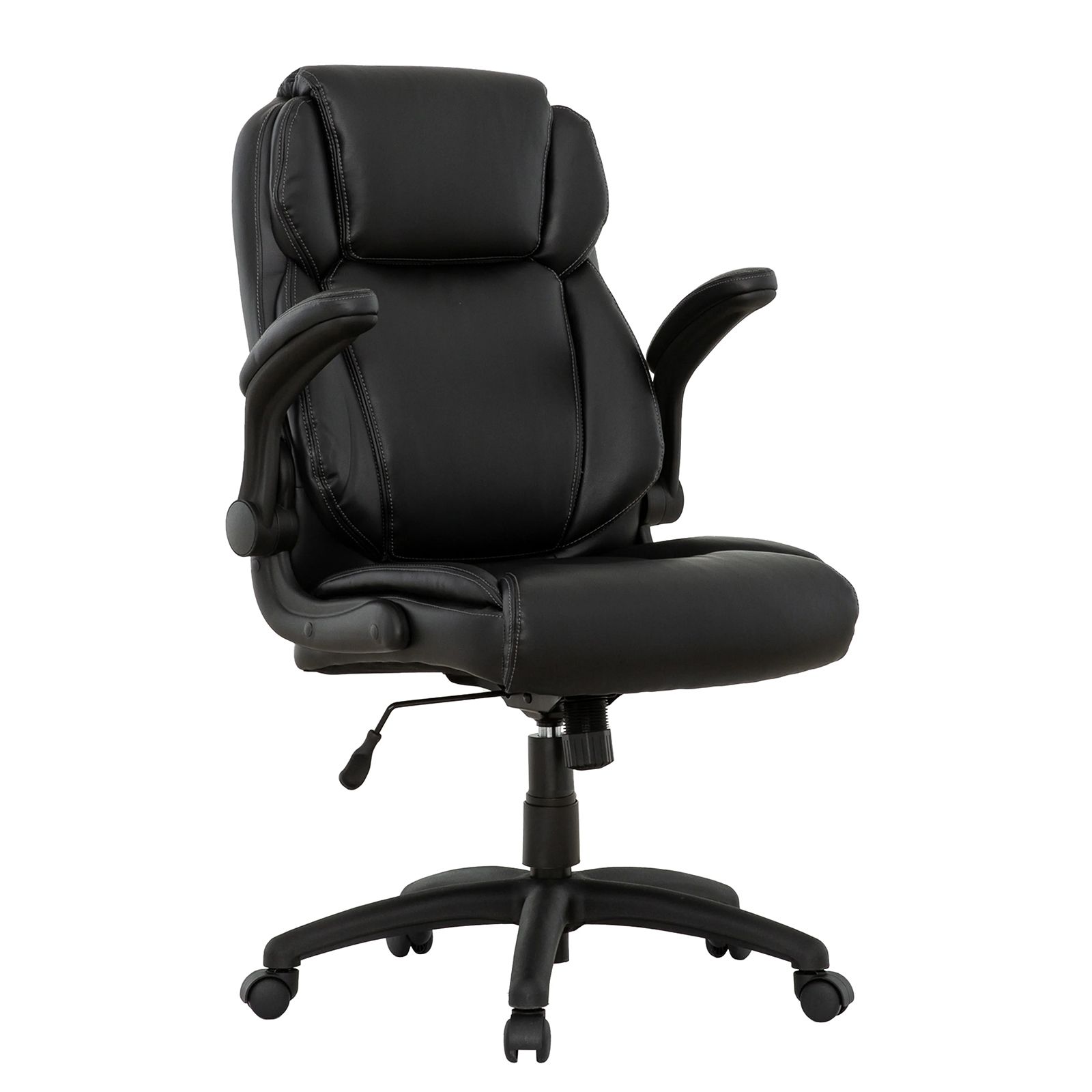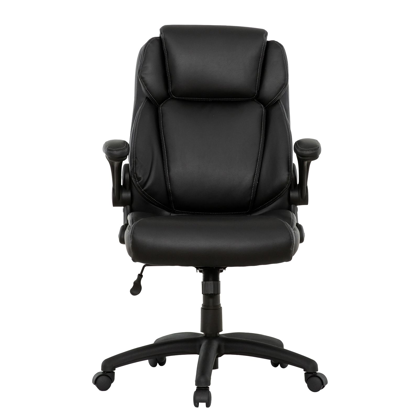 The Sealy® Atlas Black Office Chair is designed to keep up with your dynamic workday. Featuring a memory foam seat with pocket coils for long-lasting comfort, flip-up armrests for customizable support, and sleek bonded leather with a subtle mesh texture, it balances style and functionality. Adjustable gas-lift height, a butterfly tilt mechanism, 360° swivel, and smooth-rolling casters let you move effortlessly, while a sturdy plywood frame ensures durability. Perfect for meetings, deadlines, or quick breaks, the Atlas adapts to your needs and keeps you comfortable all day.