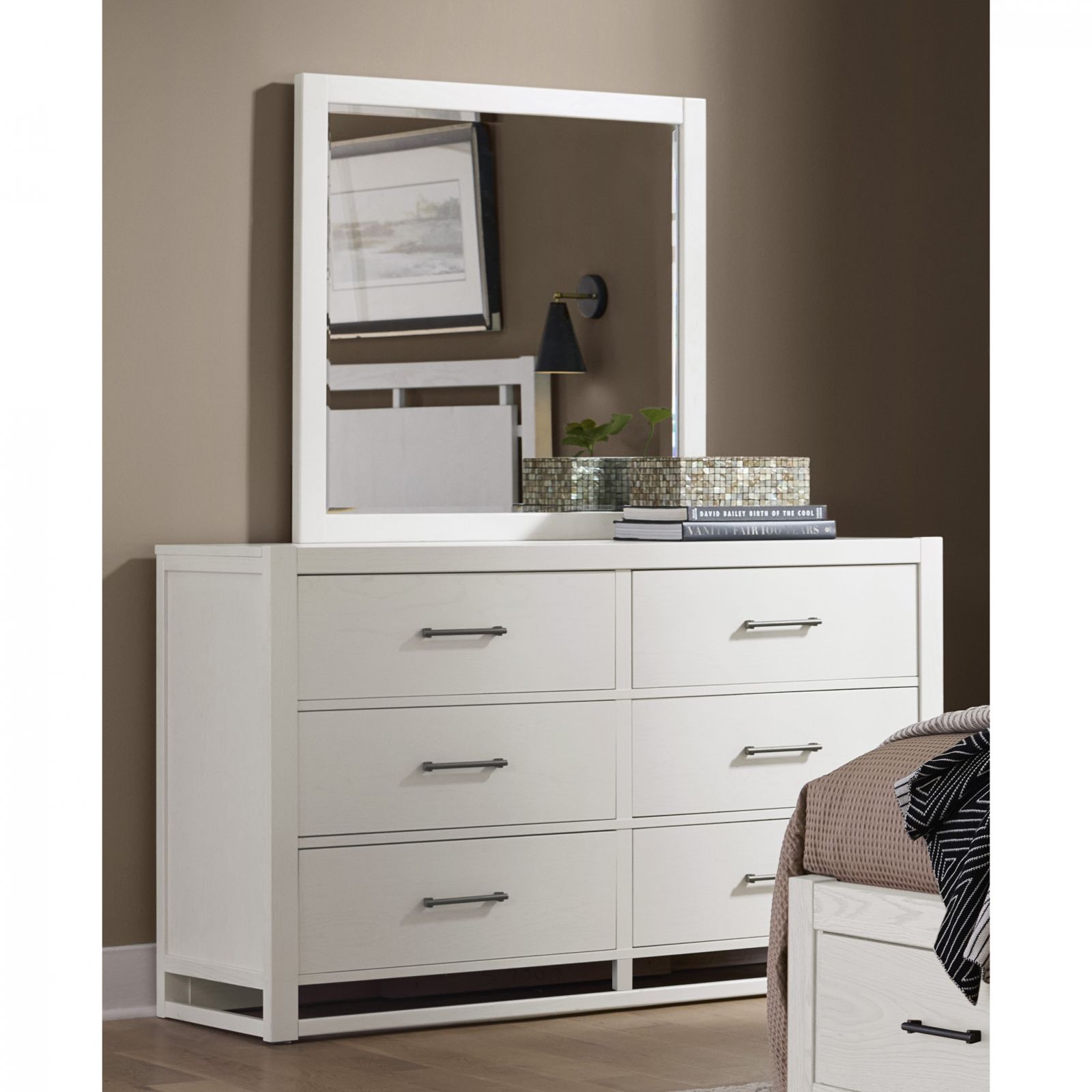 The Lodge & Loft Soft White 3-Piece Queen Bedroom Group by Vaughan-Bassett combines rustic oak character with clean, modern lines. Proudly made in the USA from solid American oak and oak veneers, the soft white finish highlights the wood’s natural grain and knots. This set includes a minimalist floating panel queen bed, along with a dresser and mirror featuring smooth-gliding drawers, French dovetail joinery, and custom hardware. Thoughtfully crafted for lasting strength, Lodge & Loft delivers timeless style with everyday comfort.
