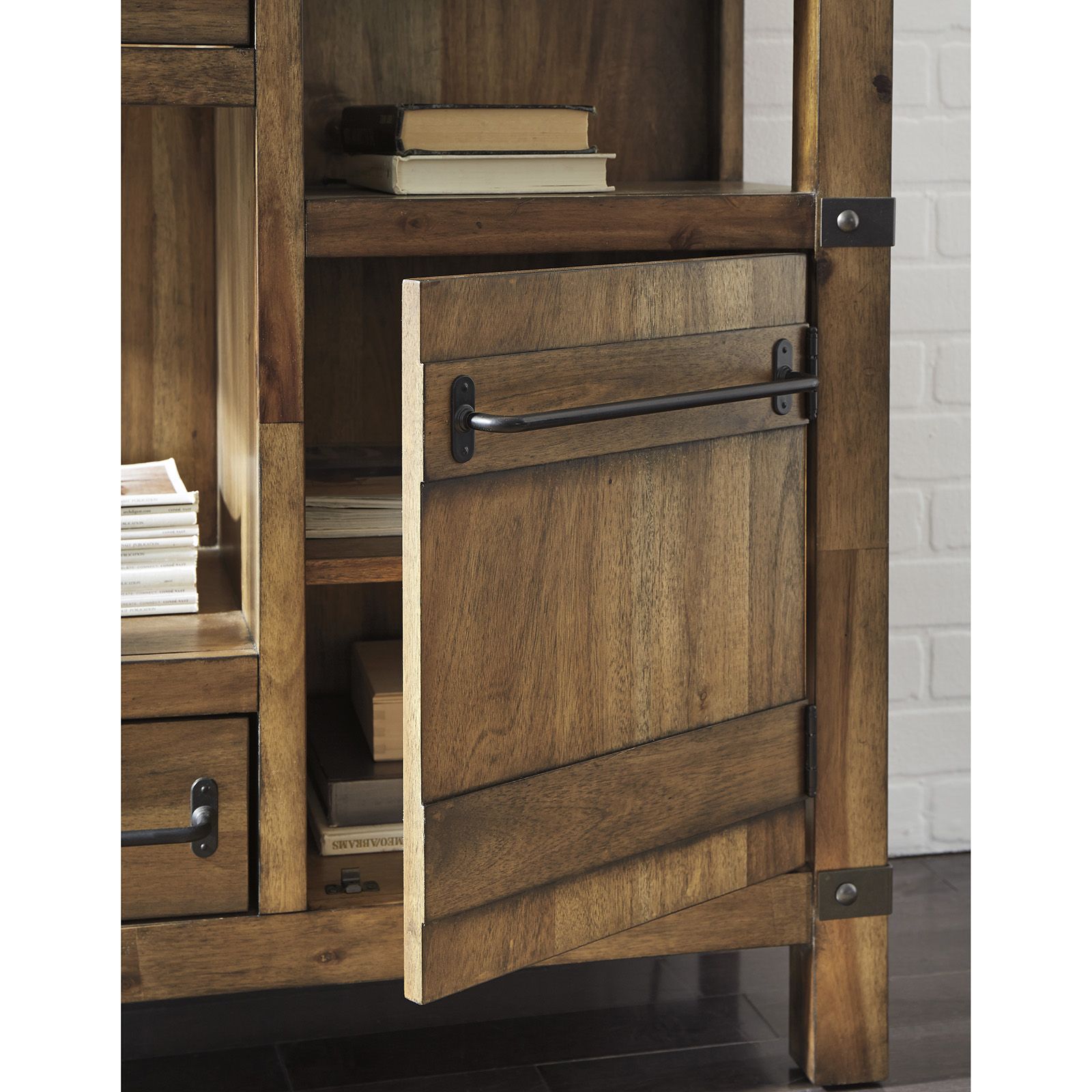 The Roybeck 3-Pack Tables bring together modern design and rustic warmth with a natural acacia wood finish and butterfly-patterned veneer. Framed in a dark bronze-tone wood for contrast, this set includes one coffee table and two end tables, each featuring a fixed shelf for added function and style. These tables offer durability with striking appeal.