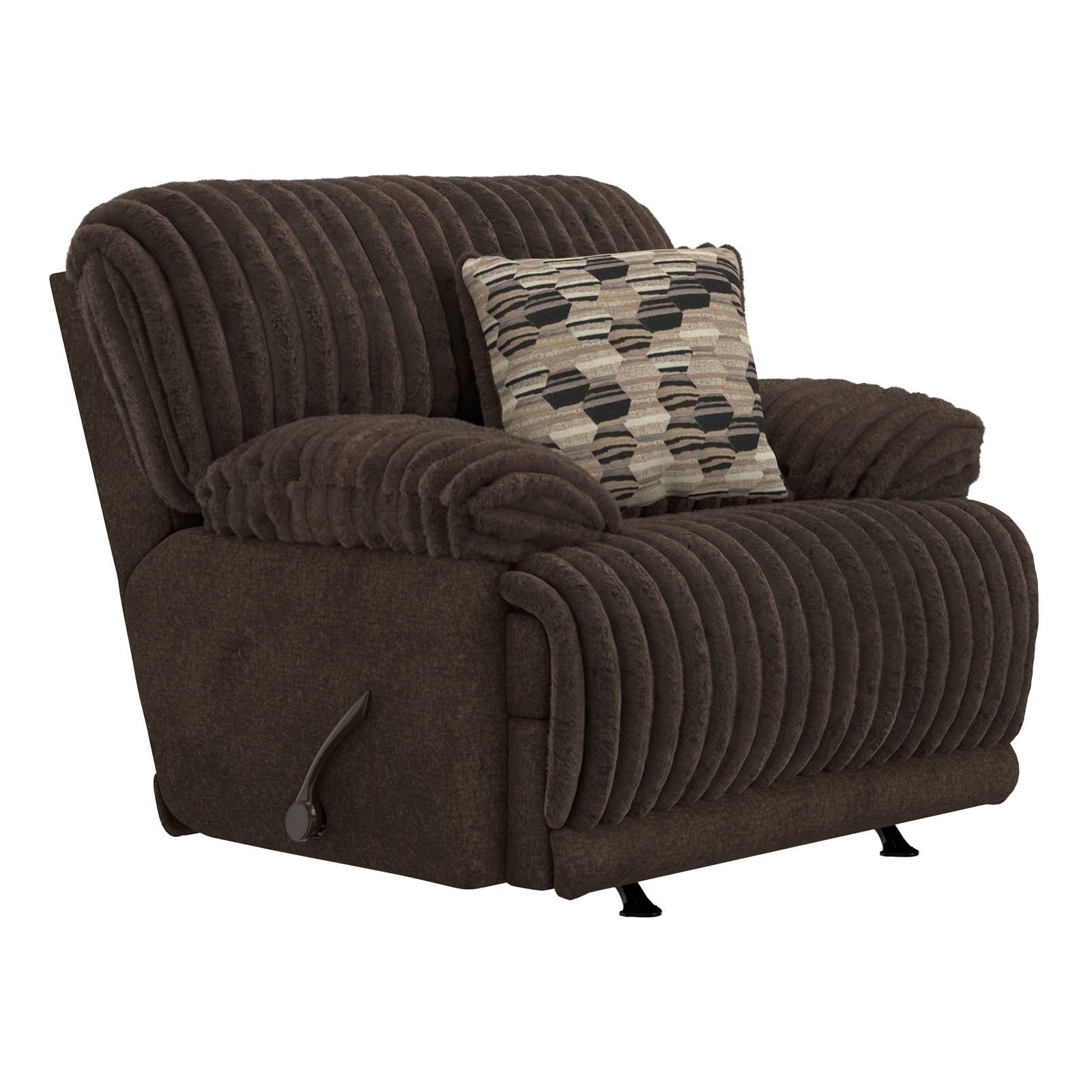 The Hollifield Chocolate Recliner Sofa offers plush comfort and timeless style. Upholstered in soft, luxurious faux fur with a wide corduroy texture, this rich chocolate brown sofa features deep chaise seating, a classic pub back, and four cozy throw pillows. Easily recline with manual handles on each side and enjoy lasting support from Comfort Coil Spring seating with gel-infused, high-resiliency foam. Built with a durable steel seat box and backed by a limited lifetime warranty, it’s comfort and quality you can count on.