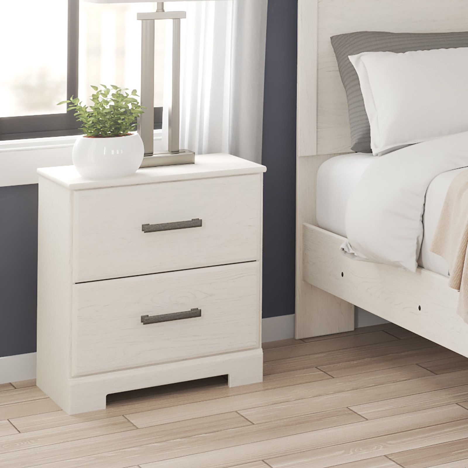 The Stelsie 3-Piece Bedroom Group brings a modern refresh to your space with its clean lines and crisp white finish. Crafted with engineered wood and a subtle replicated grain, this set includes a queen panel bed, dresser, and mirror for a complete look. The bed’s plank-style headboard adds dimension and detail, while the dresser offers six smooth-gliding drawers with antiqued pewter-tone handles for both style and function. Designed with safety and stability in mind, this group blends contemporary design with everyday practicality, making it a versatile choice for any bedroom.