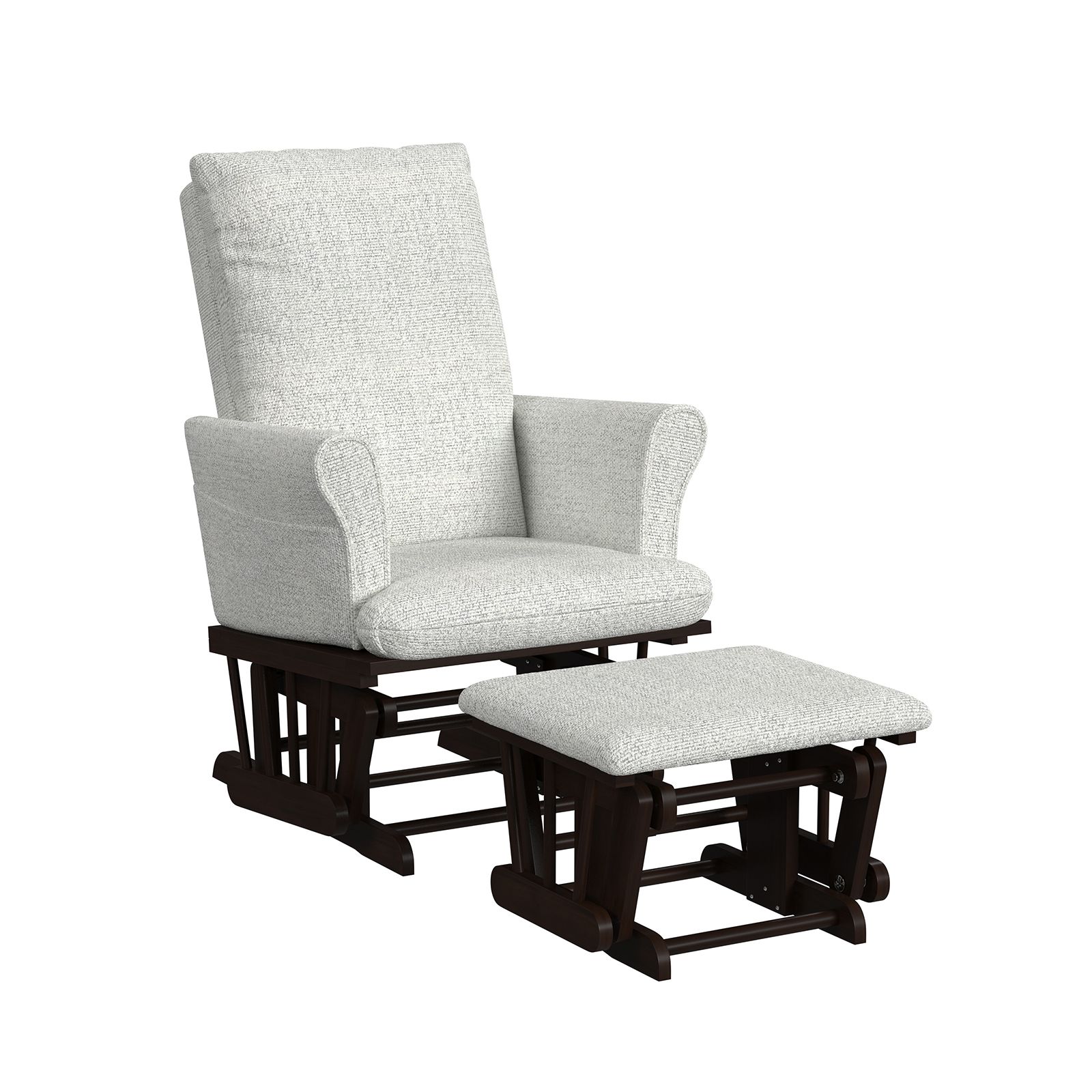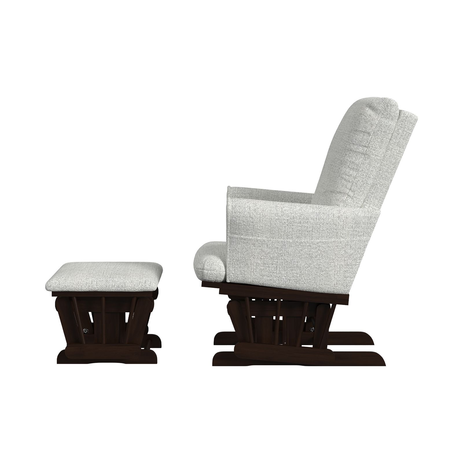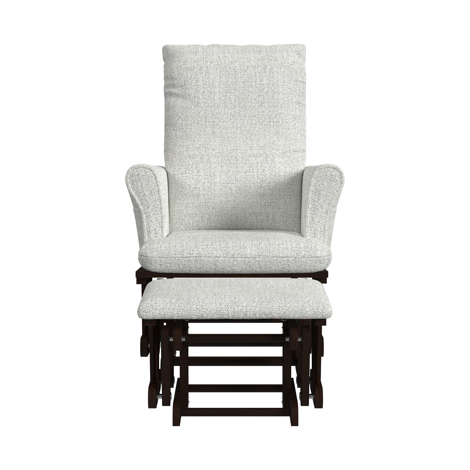 Relax in effortless comfort with the Britt Owl Glider Rocker & Ottoman. Upholstered in soft light gray polyester fabric, this cozy set is designed for gentle, smooth rocking that helps you unwind at the end of the day. The supportive straight back and plush seating provide exceptional comfort, while the dark wood base adds a touch of warmth and contrast. Complete with a matching ottoman, the Britt Owl Glider Rocker creates the perfect spot for soothing relaxation in any room.