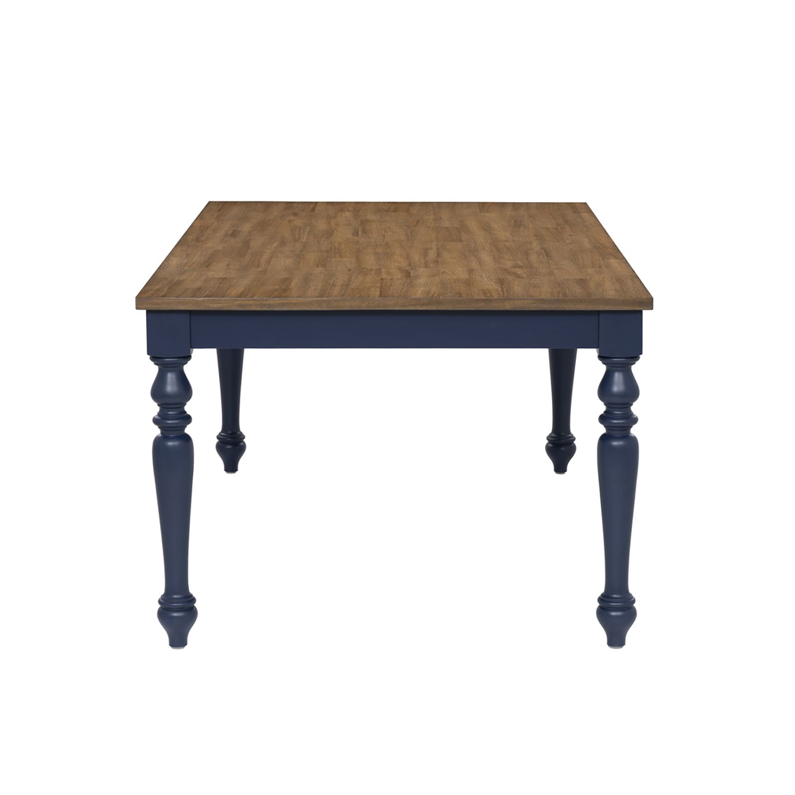 Gather in style with this 6-piece transitional dining set, combining modern functionality with timeless design. Crafted from solid rubberwood and MDF, the rectangular table features a warm brown top contrasted by a deep navy base, finished with a smooth lacquer coating for long-lasting beauty. Four matching X-back chairs and a coordinating bench provide flexible seating for family dinners or friendly gatherings. Soft upholstered seats and turned legs lend a refined charm, while the durable build ensures comfort and stability for years to come.