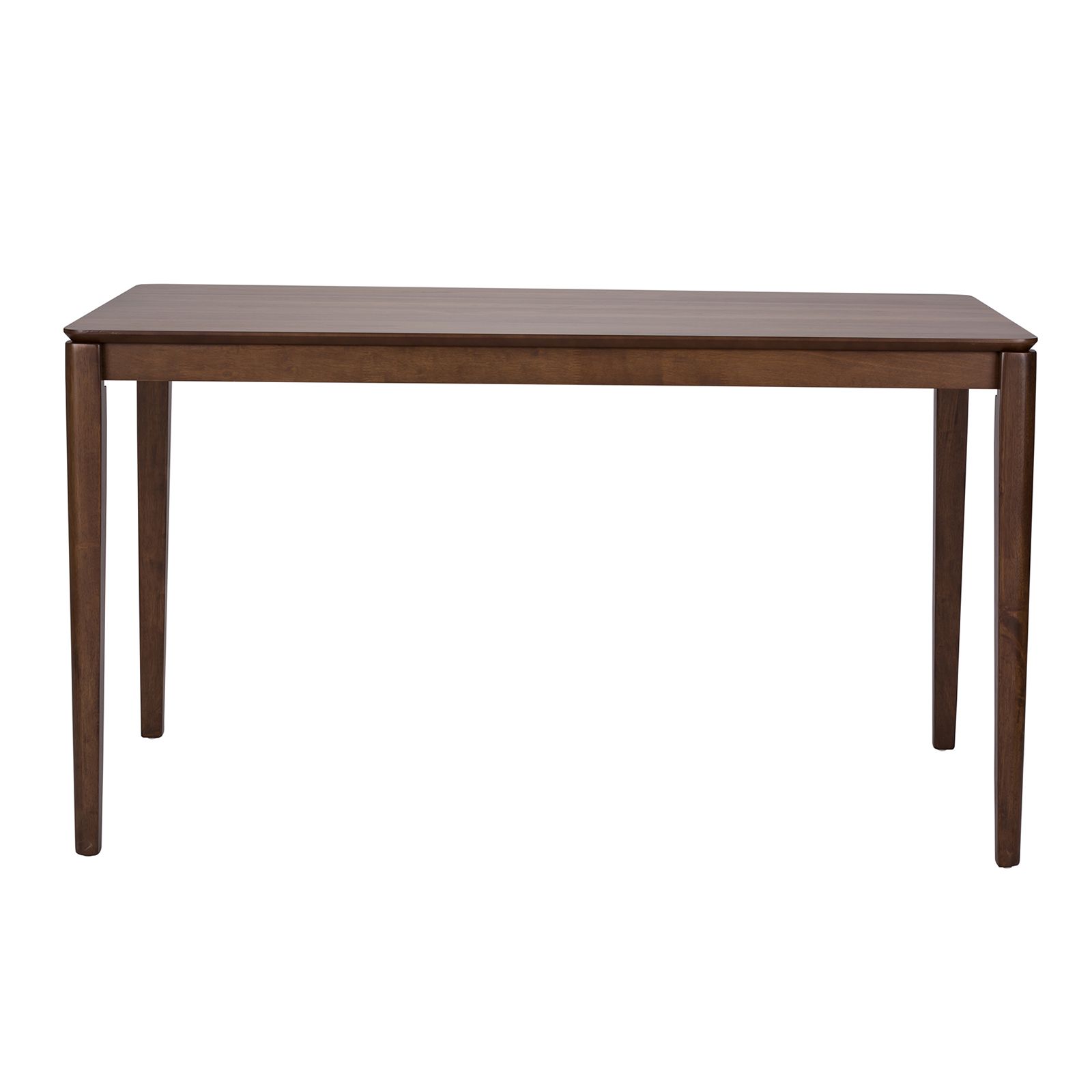 Gather the family around the Space Savers triangle table. Crafted of rubberwood solids and walnut veneers, this unique piece features a satin walnut finish, unique shape, a fixed top, and is anchored by beautifully splayed tapered legs with a softly rounded edge. This table is sure to create a simplistic statement in any room.