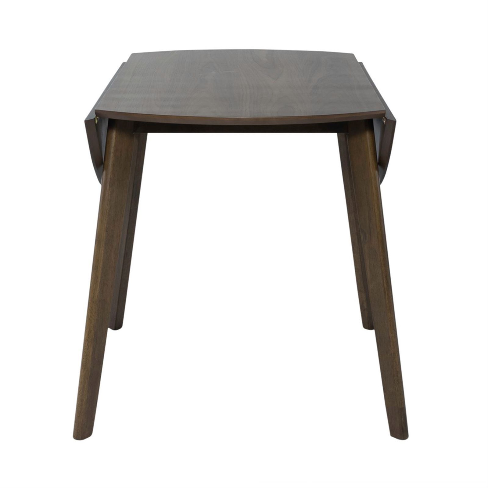The Space Savers Drop Leaf 3-Piece Dining Set offers versatile style designed for everyday living and smaller spaces. Crafted from hardwood solids and veneers in a warm Satin Walnut finish, the table features two 9" drop leaves that easily expand or tuck away to fit your needs. Softly rounded edges and beautifully splayed legs create a clean, contemporary look, while the coordinating side chairs feature gray upholstered linen seats, shaped cap rails, and nylon chair glides for lasting comfort and easy movement. Perfect for casual dining with flexible functionality.