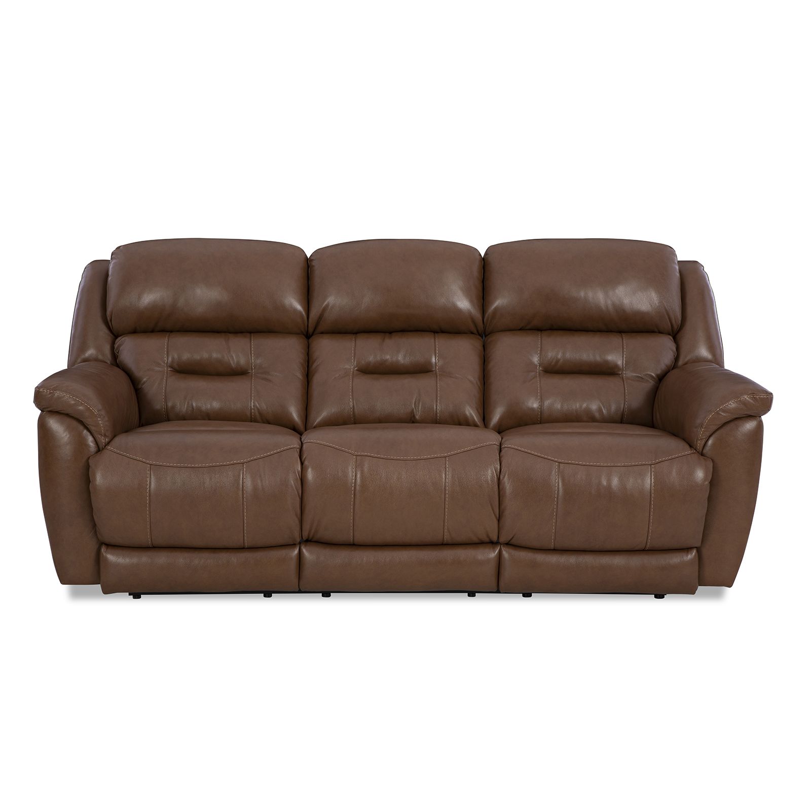 Enjoy premium comfort with the Contender Saddle Power Recliner Console Loveseat. Wrapped in saddle brown top-grain leather where you touch, this power reclining loveseat features an adjustable headrest and lumbar support, extended footrest, and Zero Gravity mechanism for enhanced relaxation. A center console with storage and cupholders, USB charging ports on both ends, and quality U.S.A. craftsmanship complete this comfortable and convenient design.