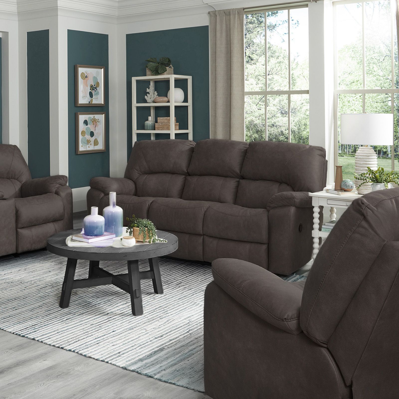 The Rhino Pewter Rocking Recliner Console Loveseat combines laid-back comfort with smart everyday durability. Upholstered in RELIAPEL™ performance fabric, this marbled pewter loveseat offers a soft feel while standing up to life’s toughest messes—resisting scratches, repelling liquids instantly, and allowing spills to wipe clean with ease. Both seats gently rock and fully recline for personalized relaxation, while the center console adds convenient storage and built-in cupholders for movie nights or game day lounging. Generously padded throughout and proudly built in the U.S.A., the Rhino delivers dependable comfort designed for busy homes with kids, pets, and real life in mind.