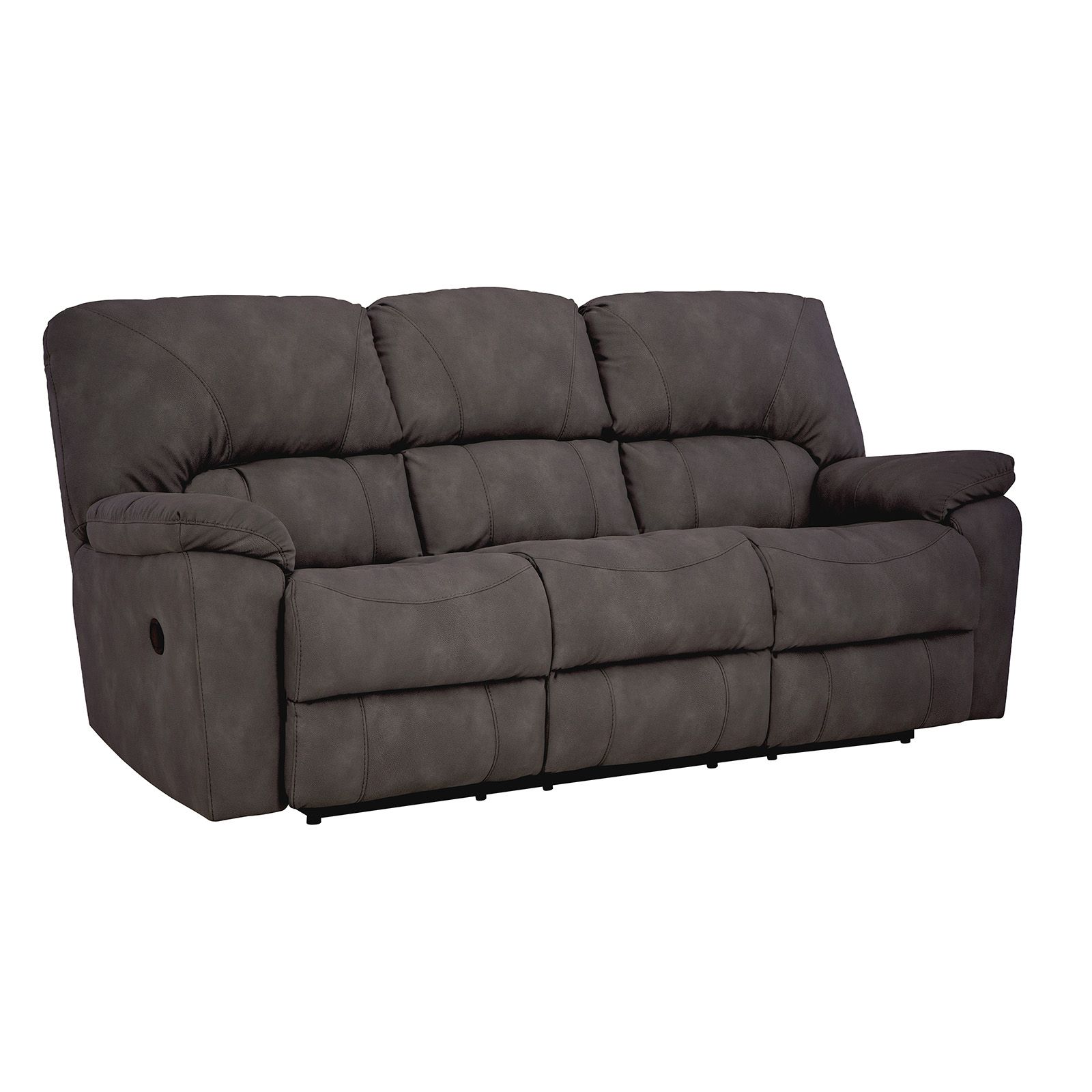 The Rhino Gray Recliner Sofa delivers the perfect blend of comfort, durability, and everyday practicality. Upholstered in innovative RELIAPEL™ performance fabric, this marbled gray sofa feels soft to the touch while standing up to real life—resisting cuts, scratches, and spills with ease. Liquids bead up instantly and messes wipe clean with just a damp cloth, making it ideal for homes with kids and pets. Generously padded seats and arms invite you to relax, while manual reclining ends provide personalized comfort for movie nights or lounging. Proudly built in the U.S.A., the Rhino is designed for lasting comfort without compromising style.