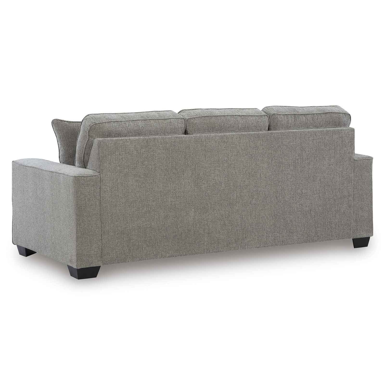 The Larimer Iron Sofa blends classic comfort with modern style for a versatile transitional look. Track arms add a contemporary touch, while soft 100% polyester upholstery in a neutral gray complements any space. Featuring attached back cushions, loose foam seat cushions wrapped in poly fiber, and two accent pillows, it’s designed for easy style and everyday relaxation.