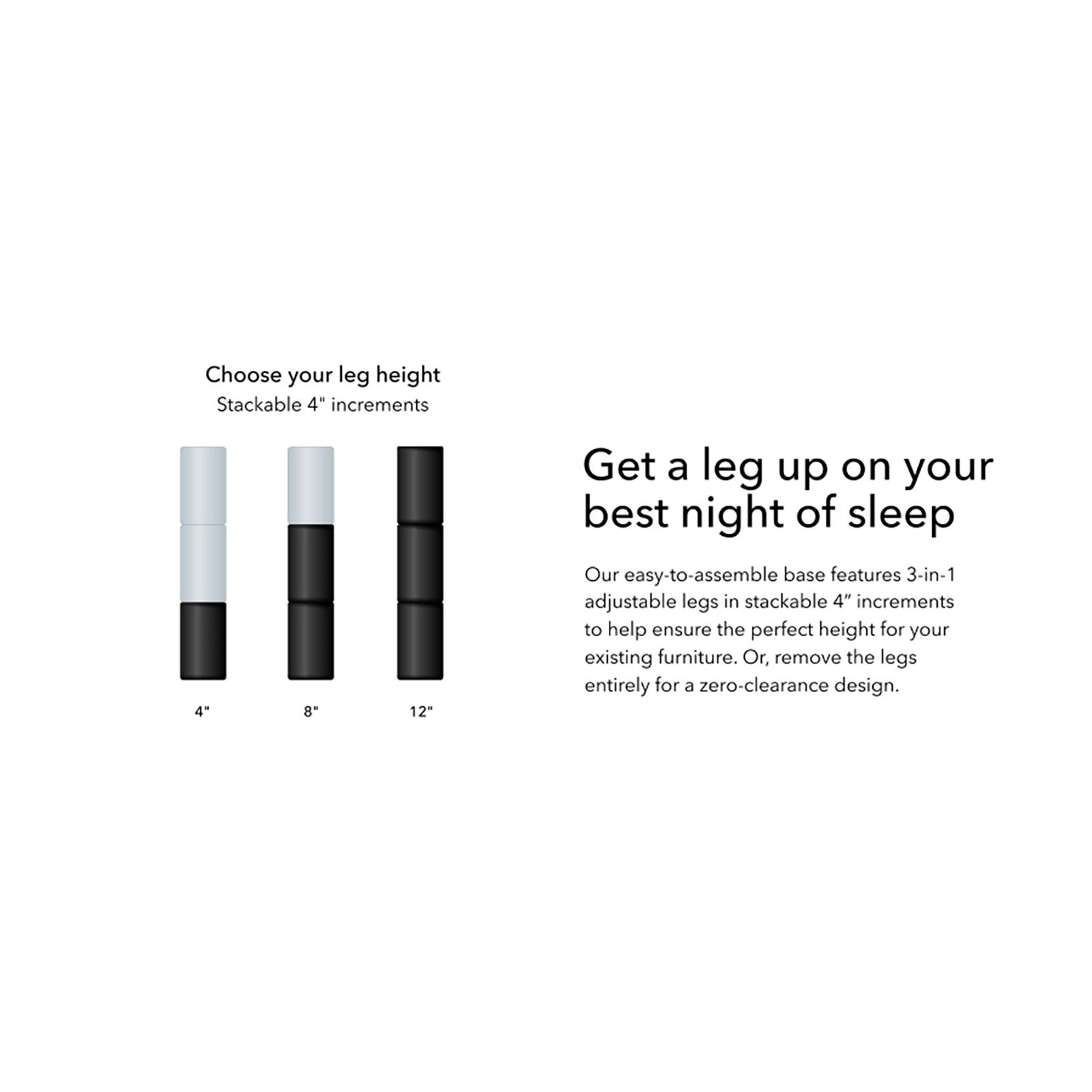 • 3-in-1 Adjustable legs (12")