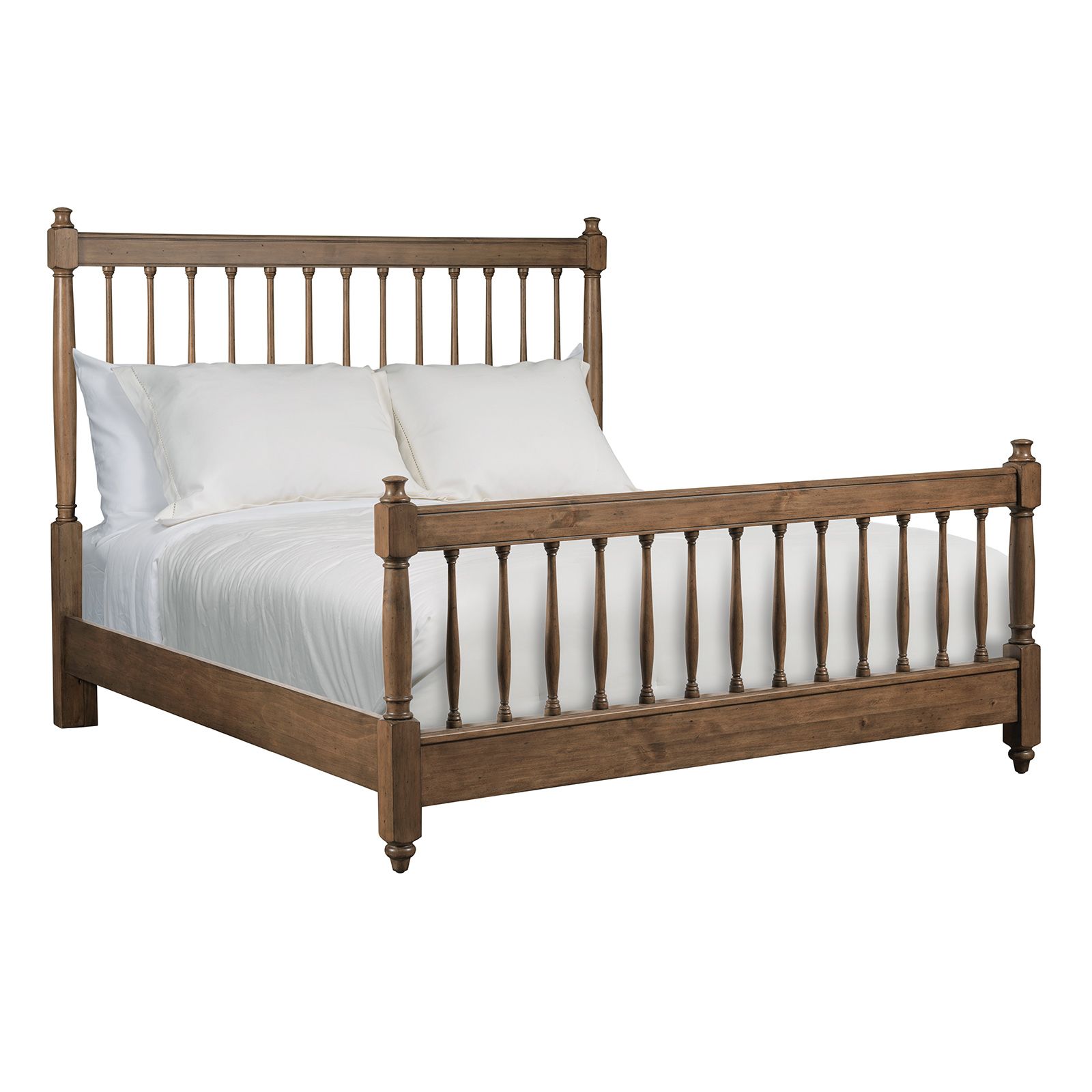 The Arbor Bark King Spindle Bed brings classic craftsmanship and timeless style to your bedroom. Crafted from 100% solid pine wood in a warm bark finish, this king-size bed includes a spindle-style headboard and footboard, sturdy rails, and center support for lasting stability. Turned feet and mortise and tenon joinery highlight its quality construction, while 6" clearance from rail to floor adds practical appeal. This piece is a beautiful foundation for any Arbor Collection space.