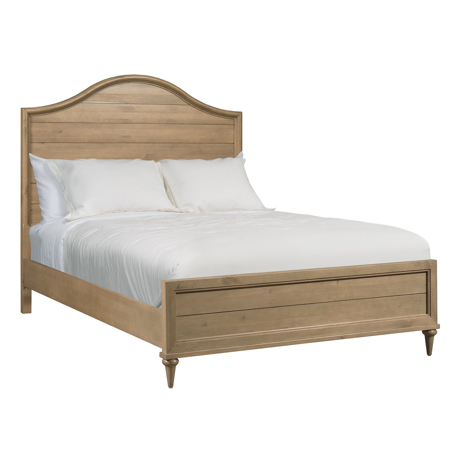 The Woodlawn Oatmeal King Panel Bed from the Arbor Collection combines classic design with sturdy craftsmanship. Made from 100% solid pine wood in a soft Oatmeal finish, it features a panel-style headboard and footboard, tapered feet, and mortise and tenon construction for lasting stability. Includes headboard, footboard, rails, and center support, and is also available in queen size.
