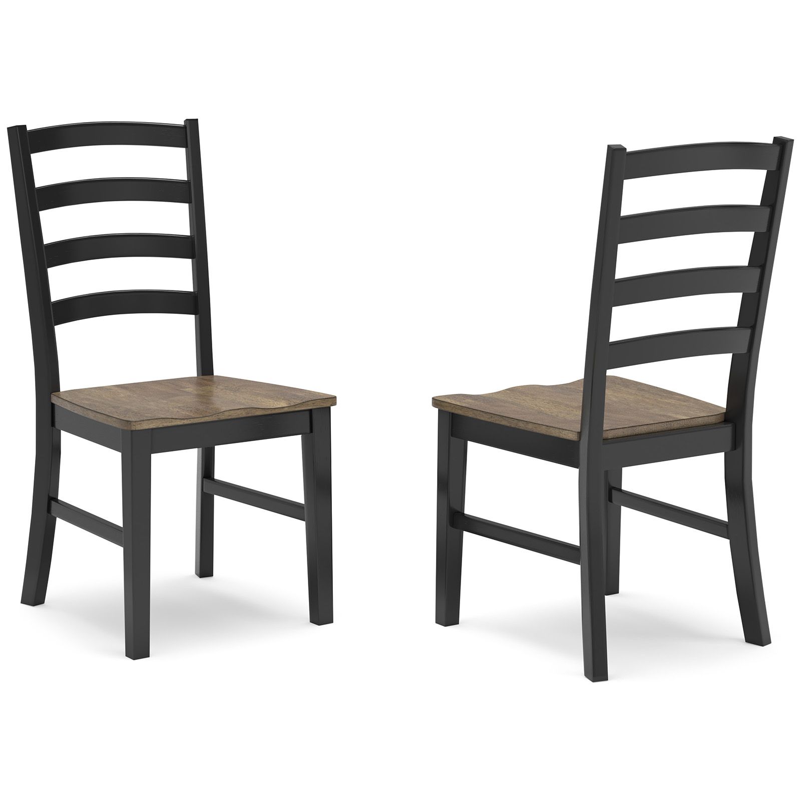 Raise the bar on modern farmhouse style with the Wildenauer Side Chair. This beautifully designed chair features a timeless two-tone finish with a deep brown contoured seat and a warm satin black frame. The clean-lined ladderback design adds a touch of modern simplicity, making it a versatile addition to any dining space. Whether your look leans vintage, country, or eclectic, this chair offers both comfort and charm in equal measure.