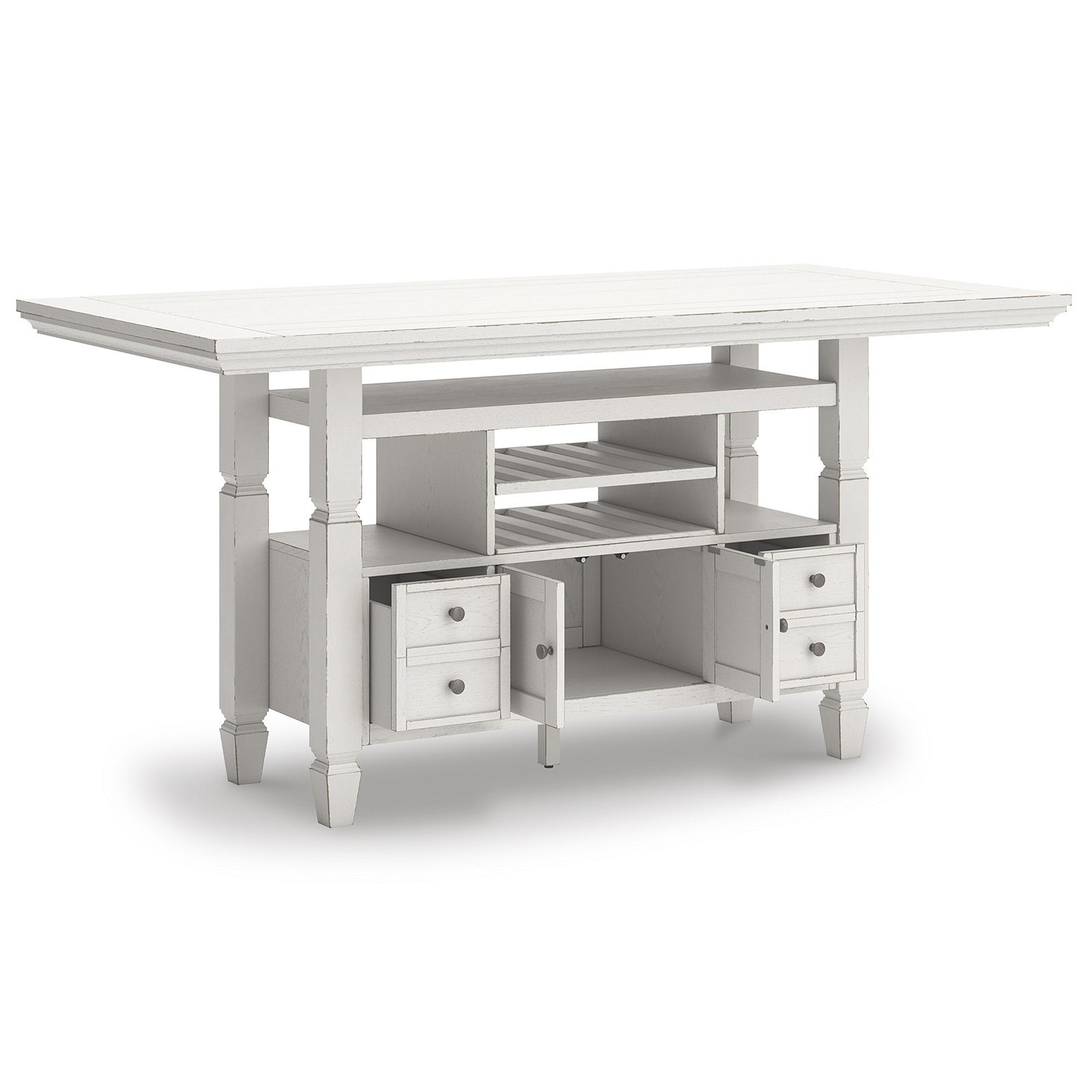 The Robbinsdale Counter Height Dining Table blends farmhouse charm with smart functionality for the perfect mealtime centerpiece. Crafted in an antiqued white finish with a beautiful wood grain texture, it exudes warmth and casual elegance. Designed with everyday living in mind, this table offers impressive storage, including two 10-bottle wine shelves (one reversible), two convenient pass-through drawers, and a lower cabinet accessible from both sides. Stylish, practical, and inviting—this table is where comfort meets craftsmanship.