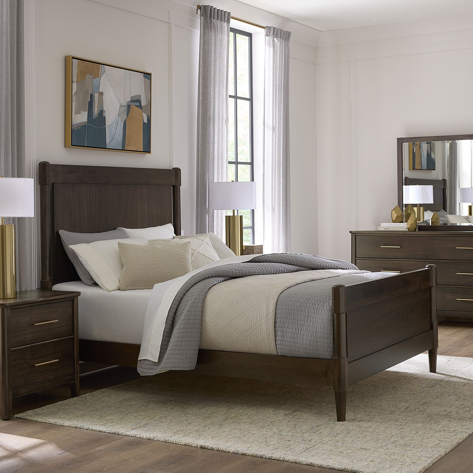 The NordHaven Two-Tone King Panel Bed combines solid maple construction with elegant walnut veneers for a timeless, modern look. Finished in Clear Maple and Nordic Walnut, its clean, minimalist lines and panel-style headboard highlight the natural beauty and depth of layered wood grain. Built for long-lasting strength with mortise-and-tenon joinery, this queen bed includes the headboard, footboard, rails, and center support, and is also available in king size. As part of the NordHaven Collection, each tree used is replaced through Vaughan Bassett’s partnership with the Virginia Department of Forestry.