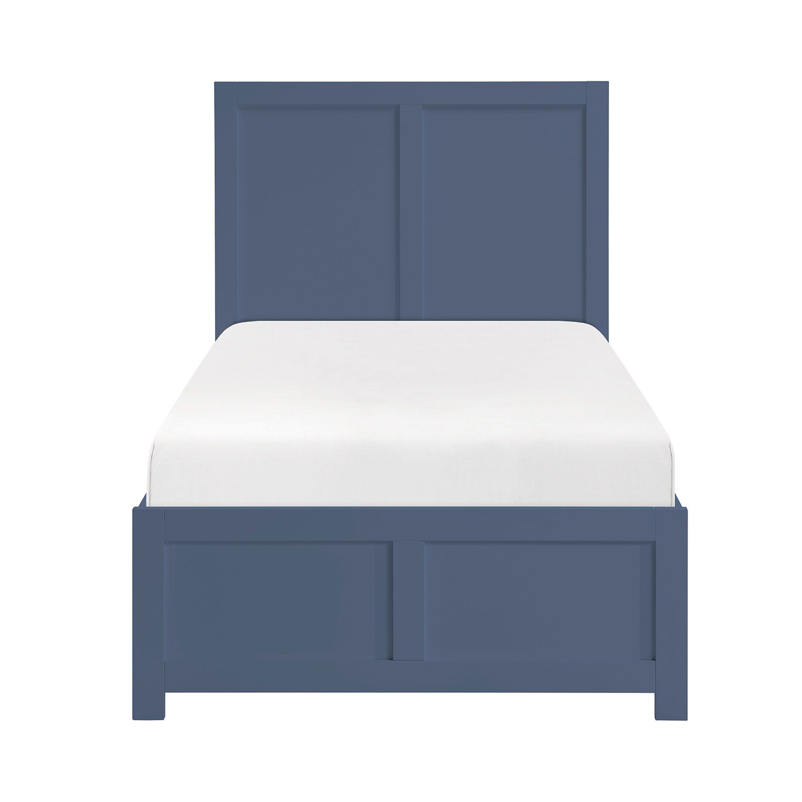 The Nora Blue 3-Piece Twin Bedroom Set brings modern style and everyday function together in one cohesive design. Finished in a rich navy blue, this minimalist group includes a twin platform bed, dresser, and mirror crafted from hardwood solids and veneers for lasting durability. The platform bed eliminates the need for a box spring, while the dresser offers seven spacious dovetail drawers with smooth ball bearing glides and polished chrome tone knobs for effortless organization. A generously sized mirror adds brightness and depth, making this sleek set a perfect choice for kids’ rooms or guest spaces. (Mattress not included.)